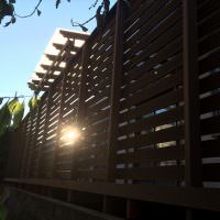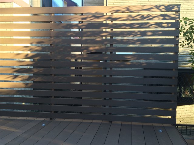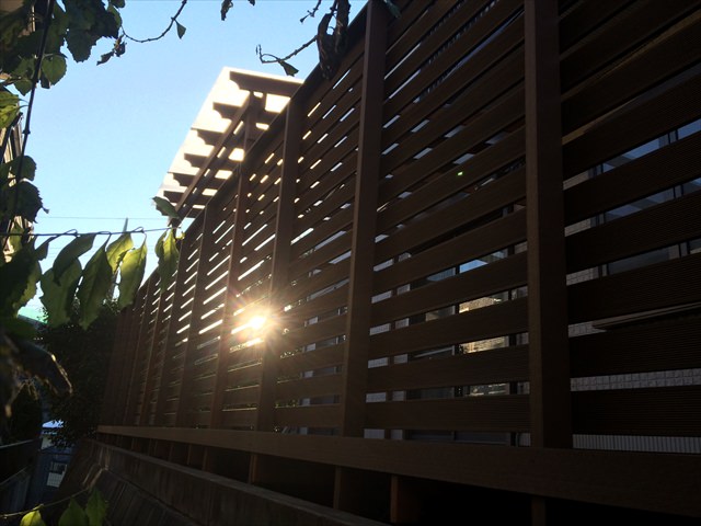 まず、伸びきった植栽を伐採して、ウッドデッキの出幅を広げることにしました。植栽で目隠しになっていた部分を隣家への配慮も兼ねてフェンスを立てますが、今回は、フェンス材のすき間を3センチ弱としています。完全に見えづらくなる平均1センチほどの目隠しフェンスより広く、風抜けもいいです。さらに植栽がなくなったことで、広く・明るく感じれるようになりました。