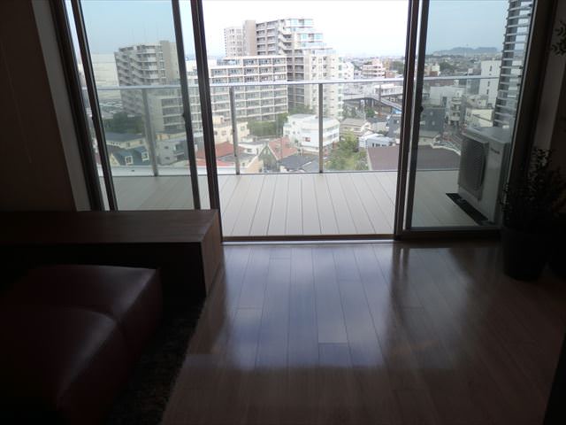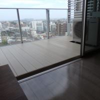 2018年7月、湘南の海を臨むマンションのバルコニーでウッドデッキを