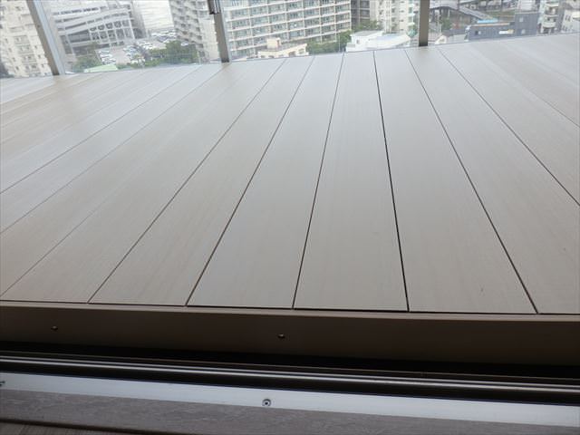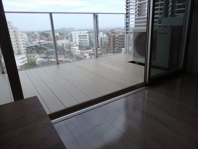 の姿ですが、マンションのバルコニーにこのような劣化した古木のデッキは似合わない