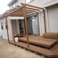 日除けのパーゴラは今やウッドデッキの必須アイテムですが今回はプラスで