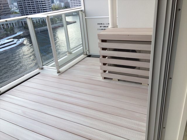 白い仕上がりベランダデッキ