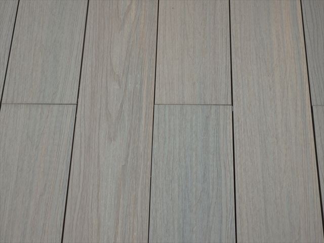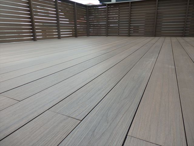 2019年1月、神奈川県でのウッドデッキの施工例です。弊社で人工木(樹脂木)のウッドデッキを取り扱いだしてからすでに12年近くなりますが、すでに第三世代までアールウッドも進化しました。第三世代のアールウッドの特徴は通常の人工木の表面にさらに特殊な仕上げコートを施したことで撥水性が良くなり、シミや汚れに強くなり、質感は木目のグレービング加工と天然木材の質感に近い縞模様が描かれます。表面はビスラインのない3mmスリットのまるで部屋内のフローリングのような仕上がりになります。