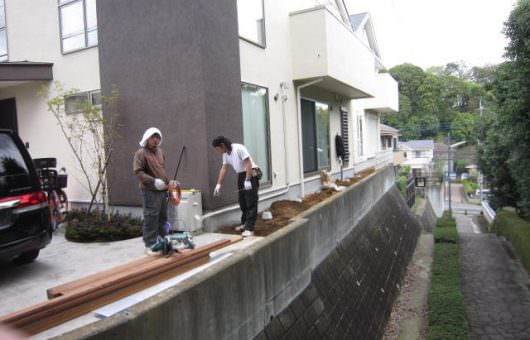 このような擁壁のある環境は横浜では多く見かけられます。