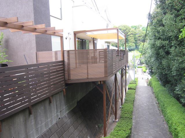 こちらの施工例の特徴は地所が家のしたの遊歩道まである関係で支柱はその