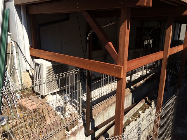 家から法面部分、境界までで2mほどあり、高さも2m以上の段差・傾斜が存在していたため、通常使いが1.2mほどの幅でしか使えませんでした。 この様な土地にほど、ウッドデッキ・ハイデッキは有効な選択肢の一つではないでしょうか…..