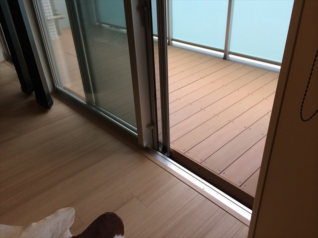 マンションベランダデッキを人工木材(アールウッド)で施工した例です。初めからの「フローリングの高さに合わせる」がご希望でした。構造材と床の高さの調整でフローリングの高さに合わせることは容易です。しかし、マンションのベラン…..