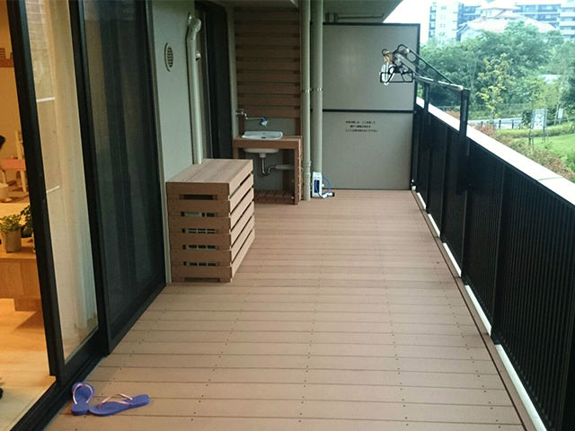 | ウッドデッキのタイプ | マンション用マンションのベランダデッキ | 施工面積 | 17㎡ |