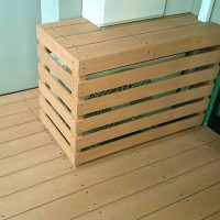 室外機カバーは材料のすき間をあけて、排熱効率を下げずに景観の統一できるようにしました。室外機カバーのデザインもシンプルな横貼りや縦貼り、リゾートにあるルーバータイプなど様々です。お好みに合わせて作成しますのでご希望をお聞かせください。