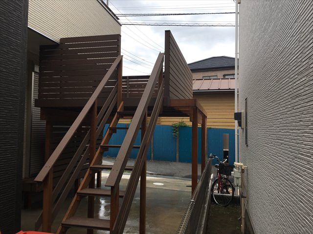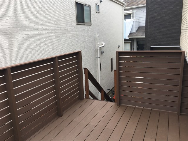 でき上がった時点で存在感・シンボル感の大きいウッドデッキですが、この事例のように、少しの配慮や日本の心「謙虚さ」があるデッキにすることで、地域関係も円滑になることでしょう。