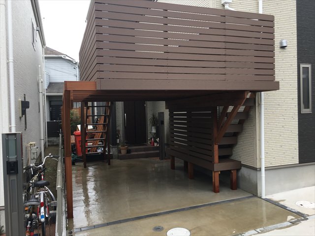 住宅事情に「土地に余裕がない」ということもあり、境界目一杯まで有効活用してウッドデッキを作りたいというご希望の多い中、隣家との関係性を大事にする施主様の要望をカタチにした、駐車場上ハイデッキの事例をご紹介します。