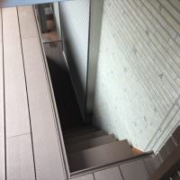 床面(デッキの高さ)は、施主様の希望通りに作成した場合、地面とベランダの間くらいの位置(2メートル)になります。これもお隣様の玄関から出て、すぐに視界に入りやすい高さとなります。そこで、施主様が駐車する際に邪魔になってしまわないように柱位置は境界に極力近づけていますが、フェンスを含めたデッキ面積を50センチ減築作成して、お隣様にも極力圧迫感を与えないような配慮設計をしています。