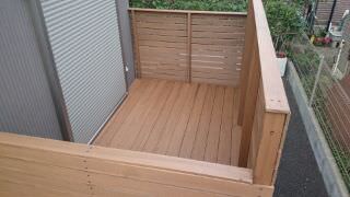 賃貸アパートのオーナー様から物件のベランダ部分に施工のご依頼をいただきました。賃貸では天然木などのように変色やささくれなどでケガをすることなどの考慮も入れるとそれらの条件をクリアする人工木材をお勧めしました。 フェンスは…..