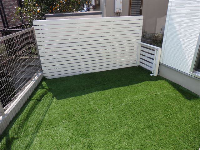 を使用したオリジナル施工になります。広さも大変大きく約32m2で人工芝も施工し