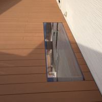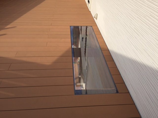 そこで下階窓上にデッキ床板ではなく、「透明のポリカーボネート」を50センチ幅の2メートルで
