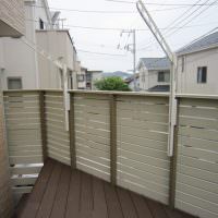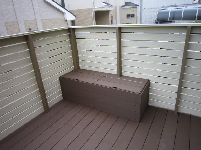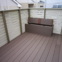 物干しも設置しました。構造材は高耐久で最強のウリン材でデッキはアールウッド人工木材です。