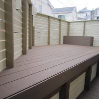 フェンスの色を変えるだけでかなり明るいイメージのウッドデッキになりました。