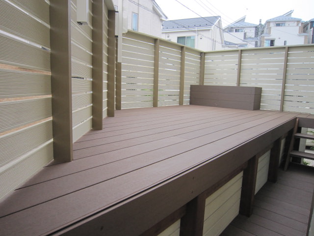 デッキはアールウッドのブラウンで無塗装ですが、フェンスの配色とのバランスも大変良く