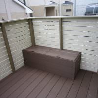 オプション工事フレンチカフェ塗装、収納ベンチ、物干し受け、階段