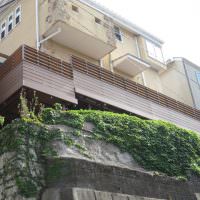 施工例は坂の上の高台に家を取り囲むL字型のウッドデッキです。
