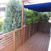 アールウッドのウッドデッキにリニューアルしました。デザイン的な特徴はフェンスは