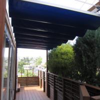 こちらの施工例では、そら風のオーニングテントで珍しい色ですがブルーを採用しま