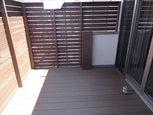 ウッドデッキに目隠しフェンスを付ける事でカーテンのない開放的な生活ができます。