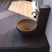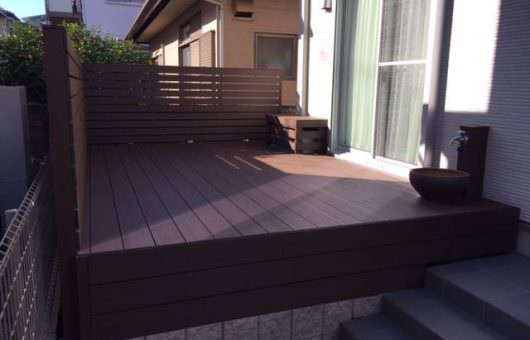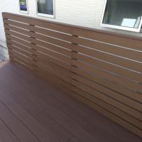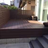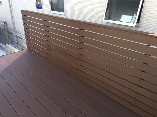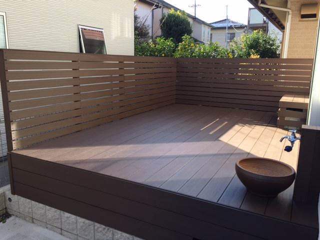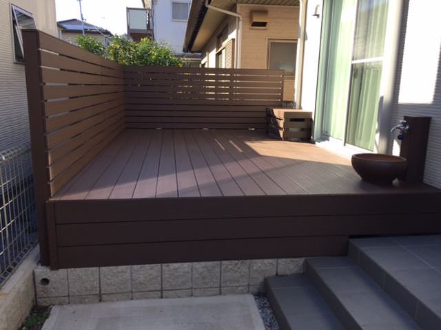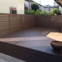 ウッドデッキでした。さまざまな木材を検証されたのち弊社の人工木材
